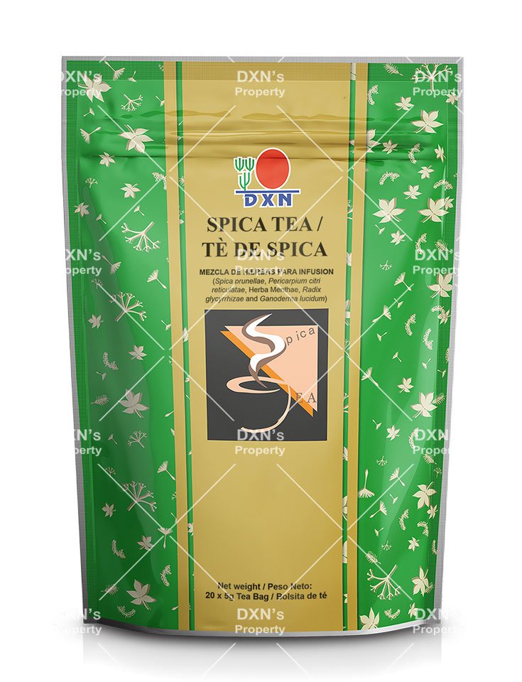 DXN ha desarrollado Spica Tea que es rico en ingredientes naturales contenidos en el Ganoderma lucidum, Radix glycyrrhizae y otros elementos naturales. Esto ha creado un té aromático delicioso con un sabor picante que permanece desde el primer sorbo hasta el último. El Té de Spica es suave e ideal para todas las edades.