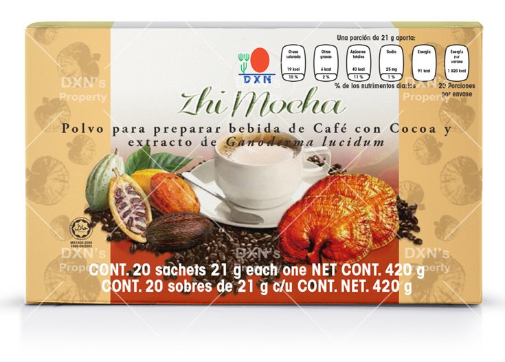 Zhi Mocha DXN es una variedad del Café Lingzhi especialmente ideado para los amantes del café que aman el sabor del chocolate también. Este rico y aromático Zhi Mocha DXN se mezcla con polvo de café instantáneo a partir de los granos de café seleccionados, extracto de Ganoderma y polvo de cacao. Ahora, los amantes del café pueden saborear y disfrutar de la diferencia de este exquisito Zhi Mocha DXN sin la sensación demasiado intensa.